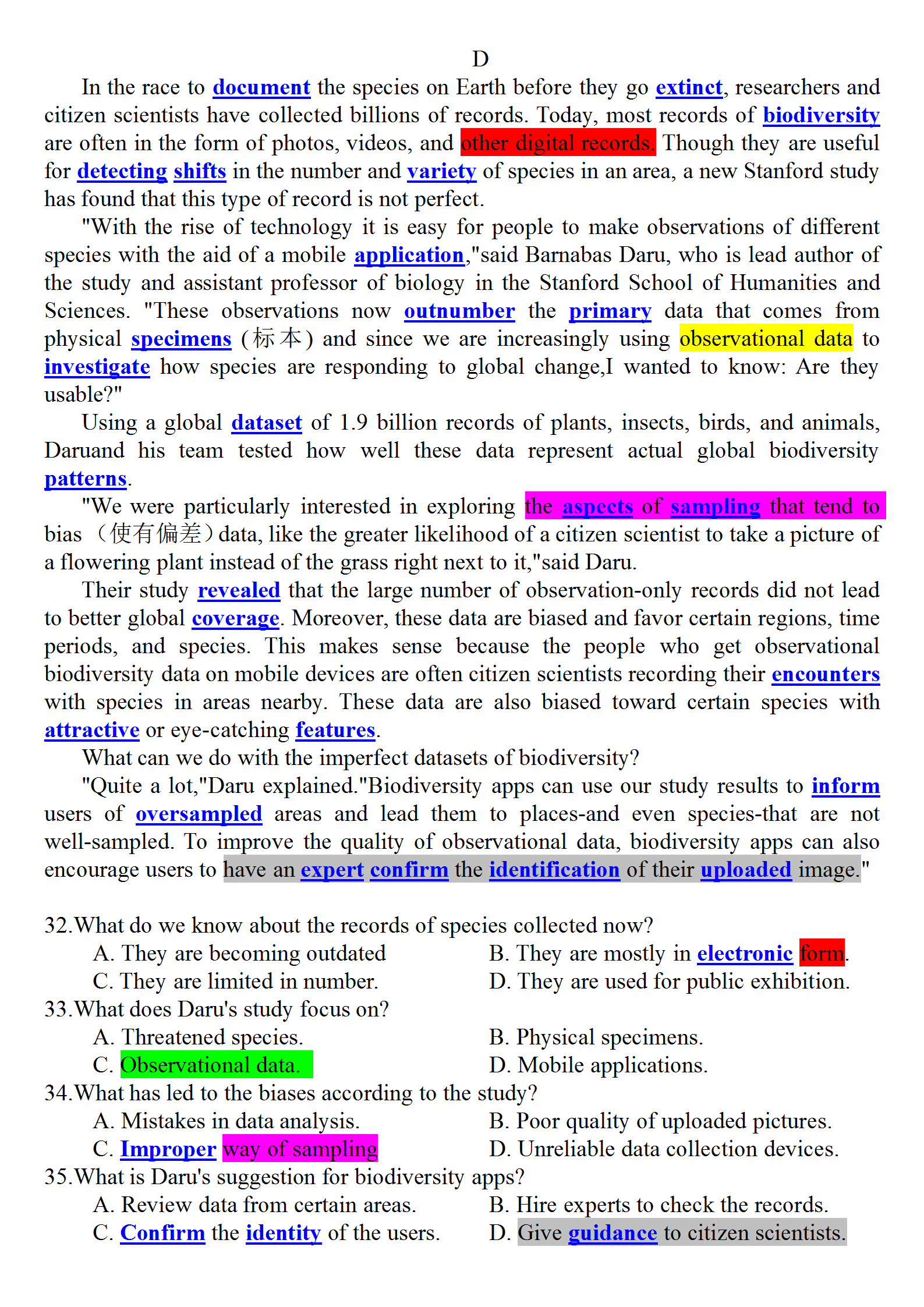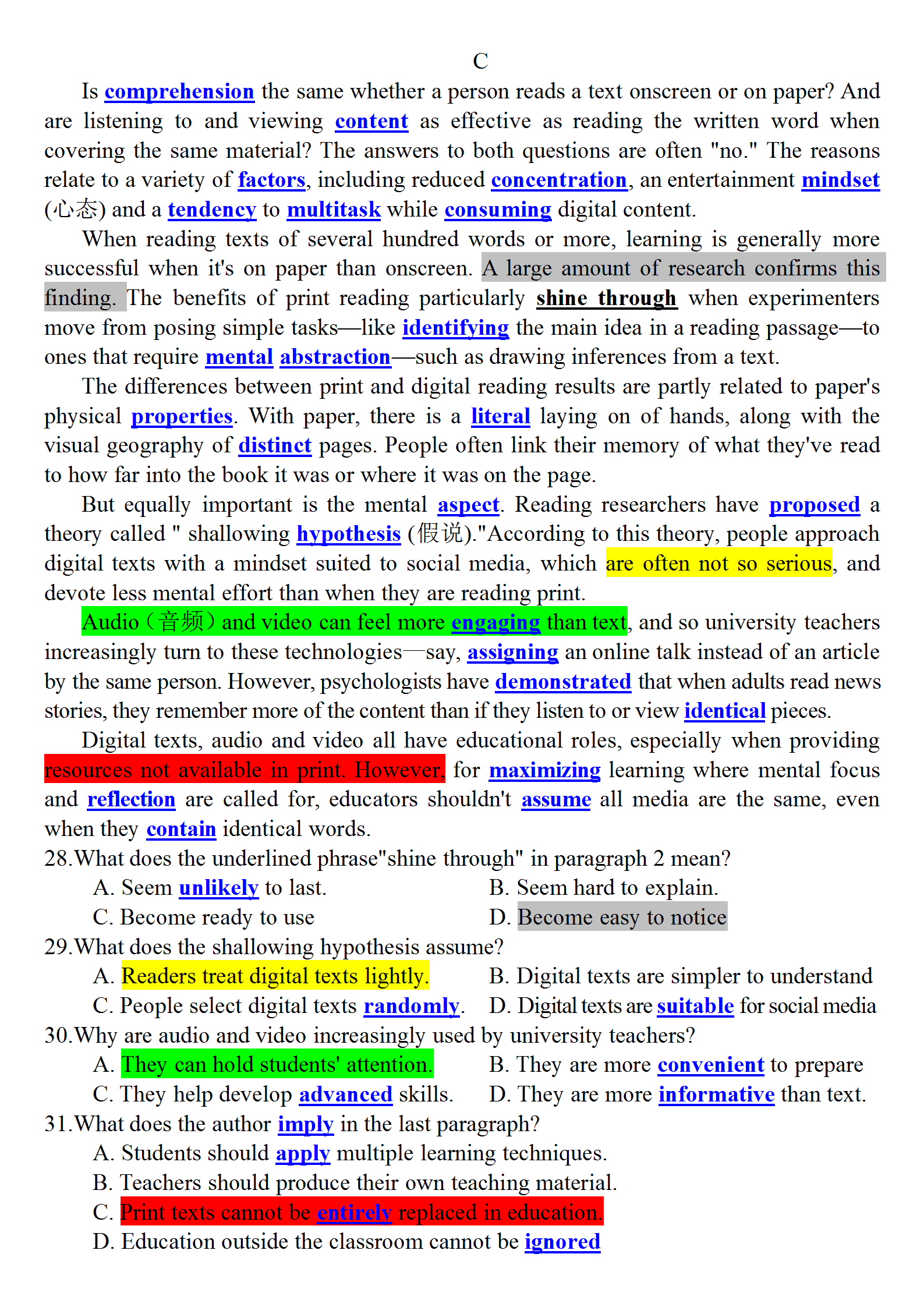 2024年新高考I卷阅读理解讲评